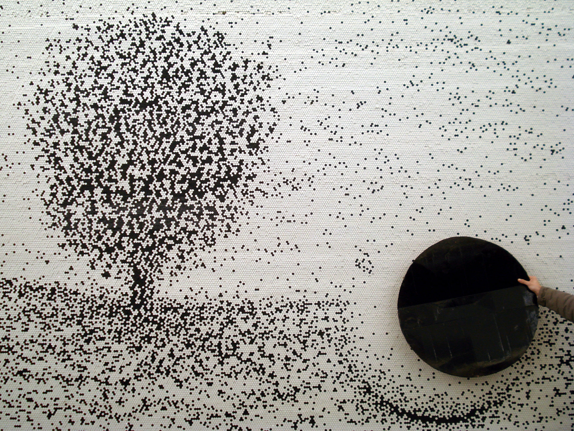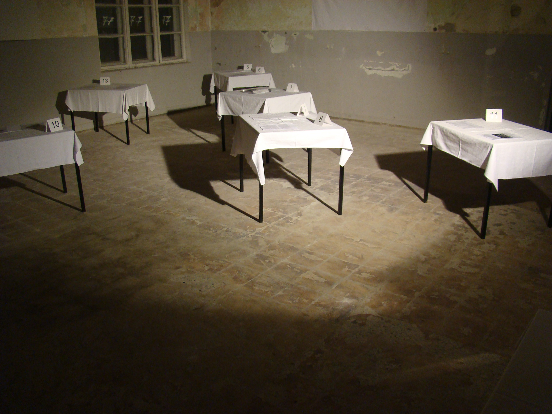 Shocked by the fact that Bosnia and Herzegovina even at the Venice Biennial Bosnia is not represented the members of the TAČ.KA association placed a paper black dot on the works of the artists exhibiting in Venice in 2007. In that way they symbolically created an Imaginary Pavilion of Bosnia and Herzegovina and the discussion about the non-representation of Bosnian art started. In 2009 the members did an enquiry: the visitors of the Venice Biennial were asked to show where the Bosnian Pavilion was. All of them were convinced of seeing it somewhere at the Biennial (or was it on TV?).